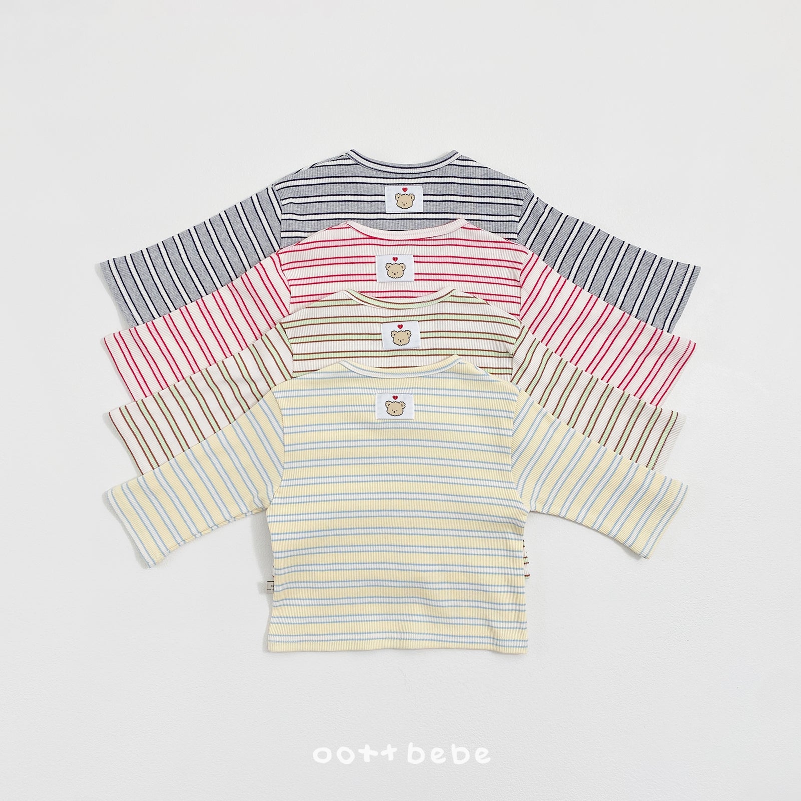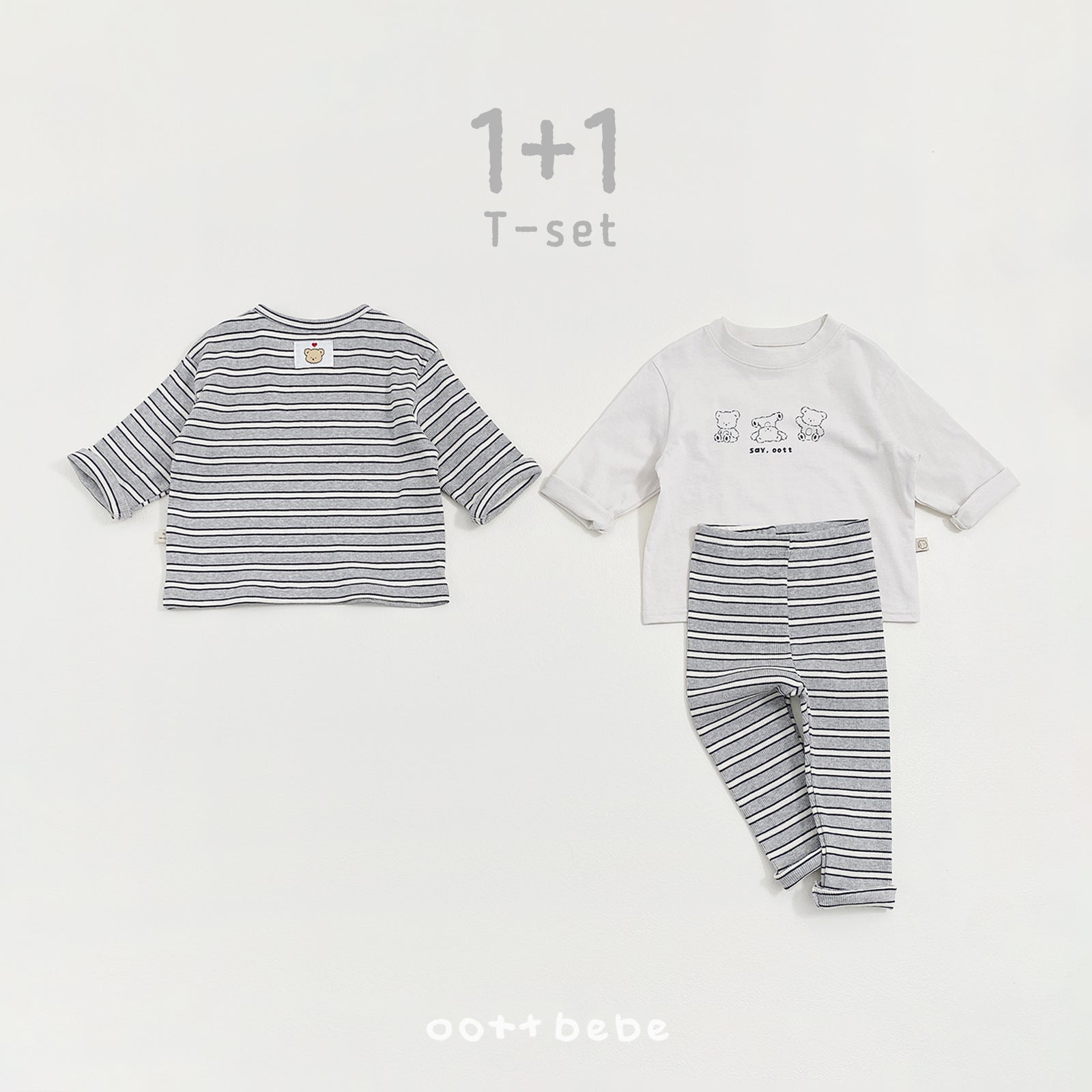 The Say OOTT 1+1 Kid Tee Set by OOTTBEBE is a practical and stylish spring essential made in Korea. This versatile set features two distinct styles: a classic solid-color tee made from 100% premium cotton and a charming striped tee crafted from a soft cotton-span blend for added flexibility. Both pieces showcase adorable bear graphics and a comfortable basic fit that allows for easy movement during daily play or outings. Available in four coordinated color pairings—Yellow (Blue), Mint (Yellow), Red (Ivory), and Melange (Gray)—this set offers endless mix-and-match possibilities for everything from daycare to spring picnics.