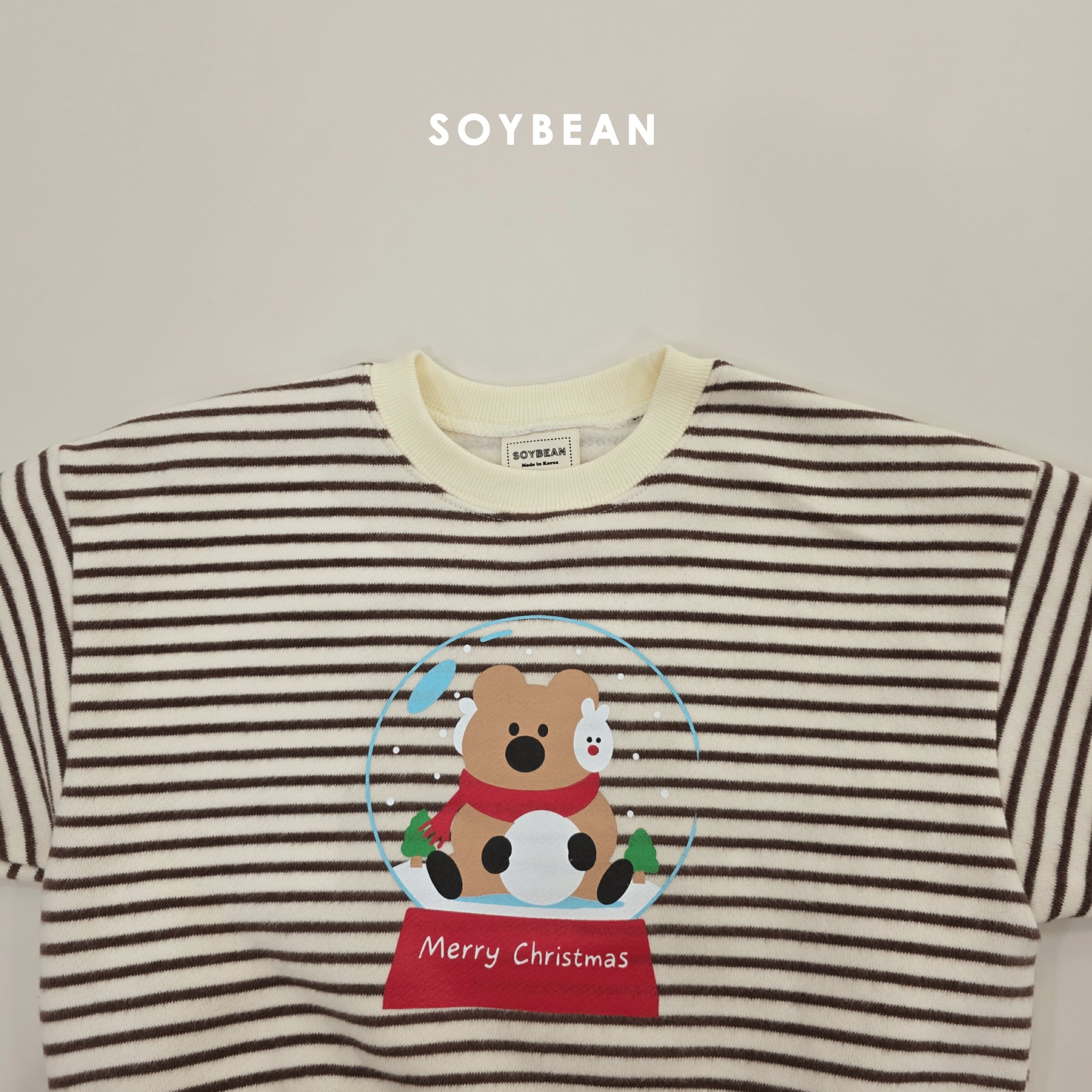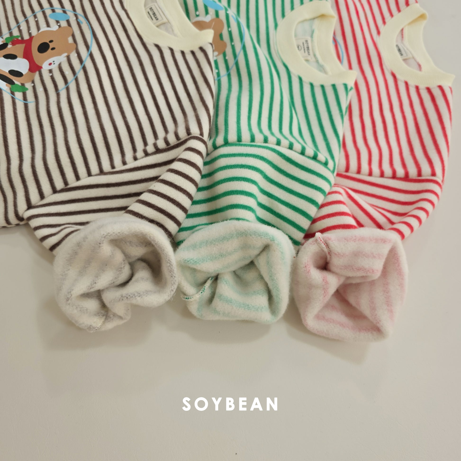 (Pre-order) Soybean Kids Winter - Snowball Stripe Fleece-Lined Top & Bottom Set 스노우볼단가라상하 (3 Colors)